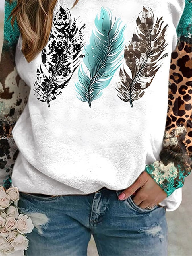 Cowhide And Turquoise Feather Long Sleeve Swearshirt
