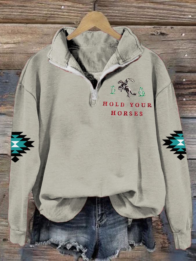 Women's Western Print Zipper Collar Long Sleeve Sweatshirt