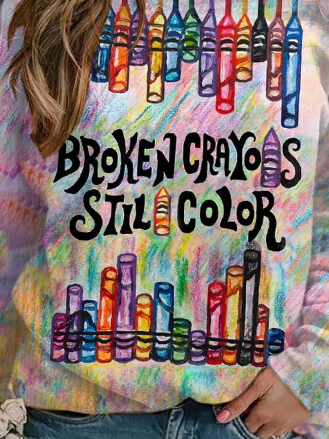• Retro Broken Crayons Still Color Print Sweatshirt